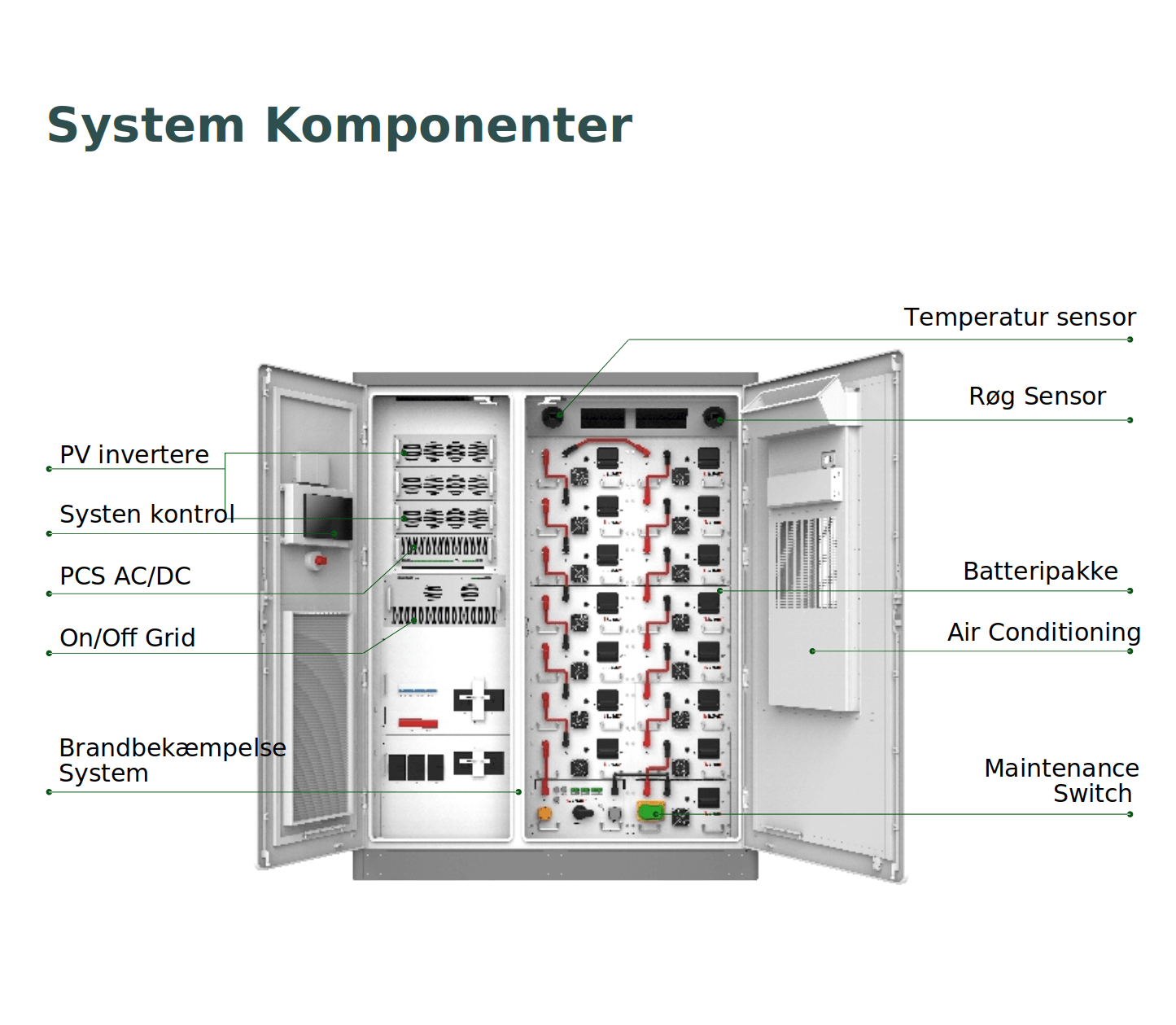 - ON/OFF Grid med STS (Static switch) kan desuden arbejde i Ø-mode og fungerer som lynhurtig backup/UPS