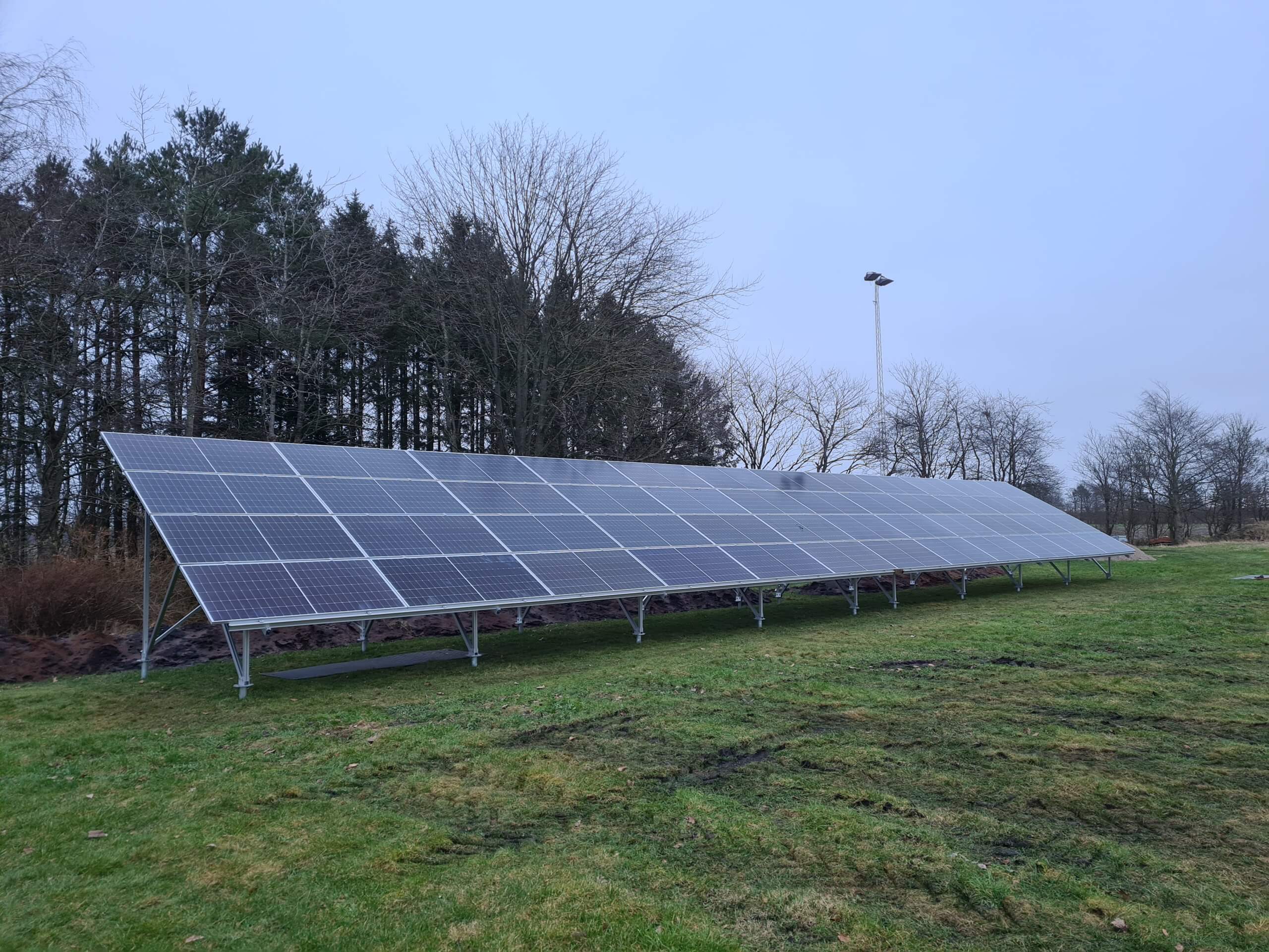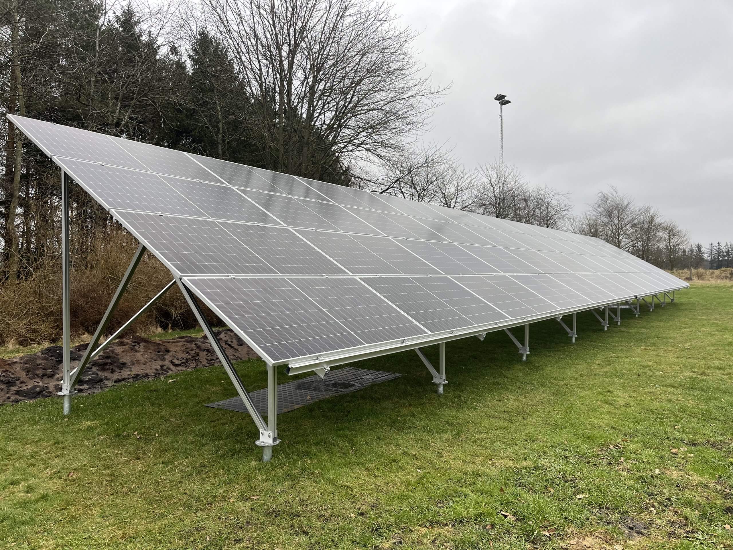 15 grader er optimalt til større markanlæg, da rækkerne skygger mindre på hinanden, og bi-facial effekt øges når panelerne vinkles mere vandret