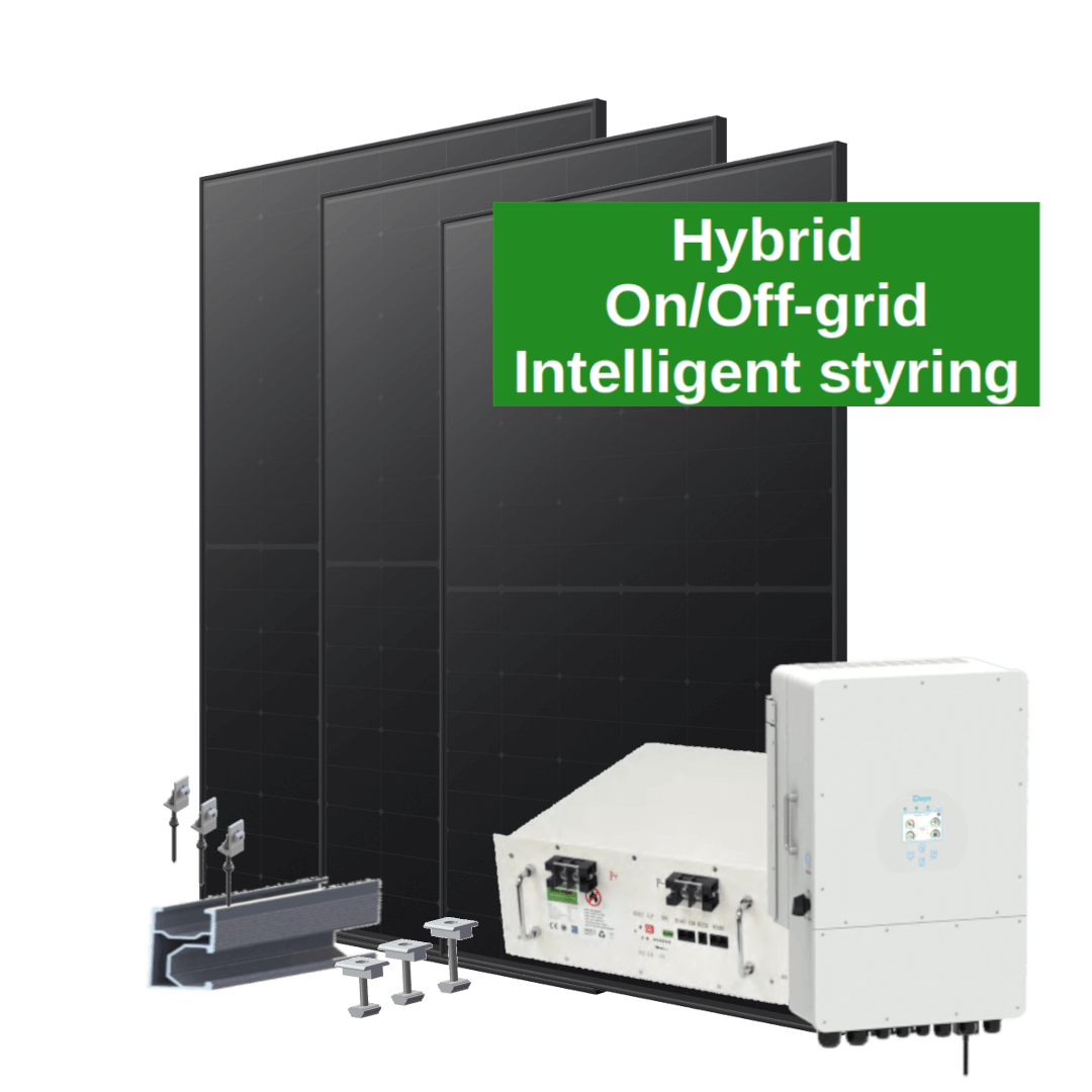Forside Shop Solcelleanlæg 10 KW Hybrid Solcelleanlæg med 10,24 kWh LiFePo4 Batteri – sorte paneler til tegl