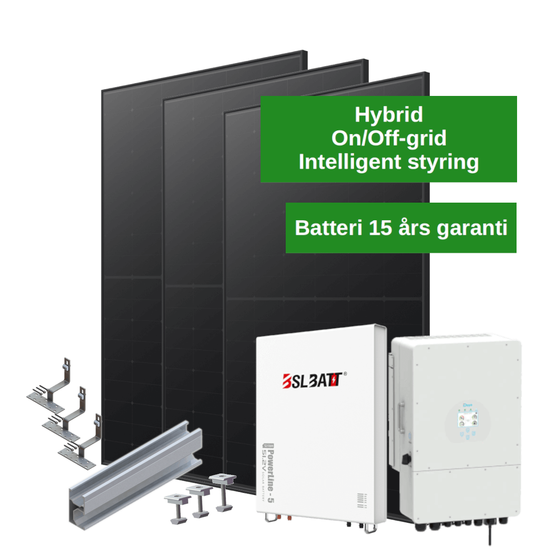 8,1 KW Hybrid Solcelleanlæg med 10.24 kWh LiFePo4 Batteri – sort til eternit-, tagpap- eller ståltag