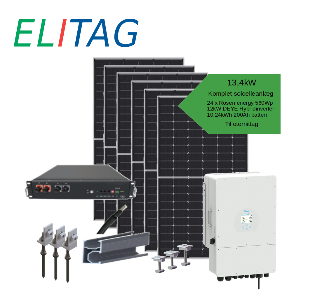 13,44 KW Hybrid Solcelleanlæg med 10,24 kWh Batteri – til eternittag